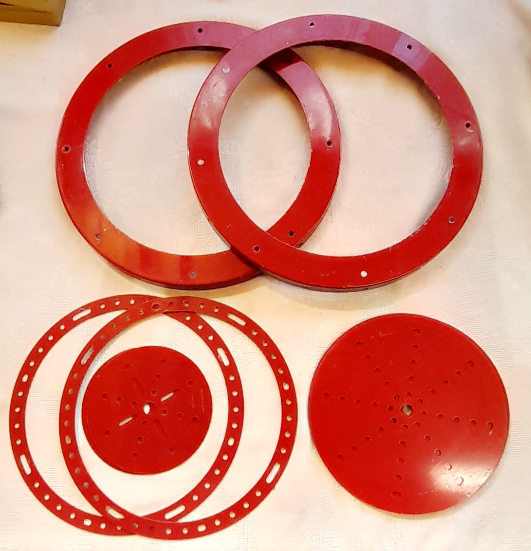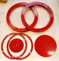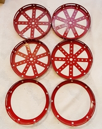 6" Circular Plates - New - Red and Blue Powder Coated -